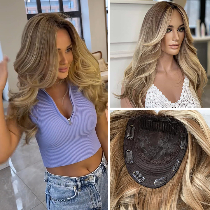 New Color Multi-Dimensional Blonde Rooted | 3*6 Straight Hair Topper | Silk Base | Natural Remy Hair