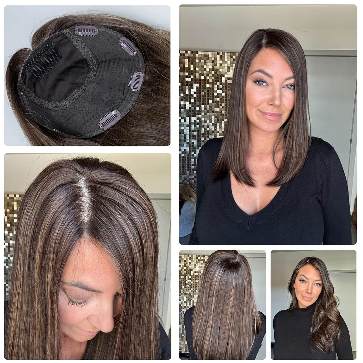 Natural Human Hair Topper - Silk Top Base Hair Topper - Straight Hair Natural and Seemless